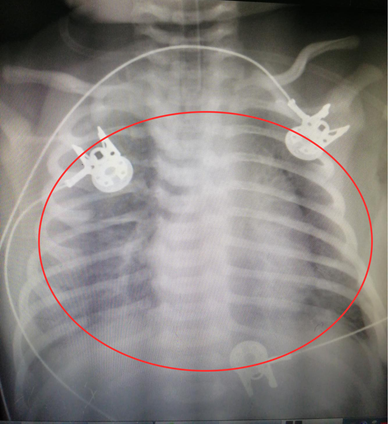 据了解,当日我院新生儿科韦彦成主任突然接到河池市妇幼保健院新生儿科紧急求助电话,一名足月出生的宝宝安安(化名)在出生5小时后,突然出现呼吸急促、呻吟样呼吸、口唇紫绀等症状,口腔内涌出大量鲜血,医生听诊肺部有大量湿性啰音,初步诊断为肺出血!病情极其危重,命悬一线,需马上转送至我院新生儿科治疗。