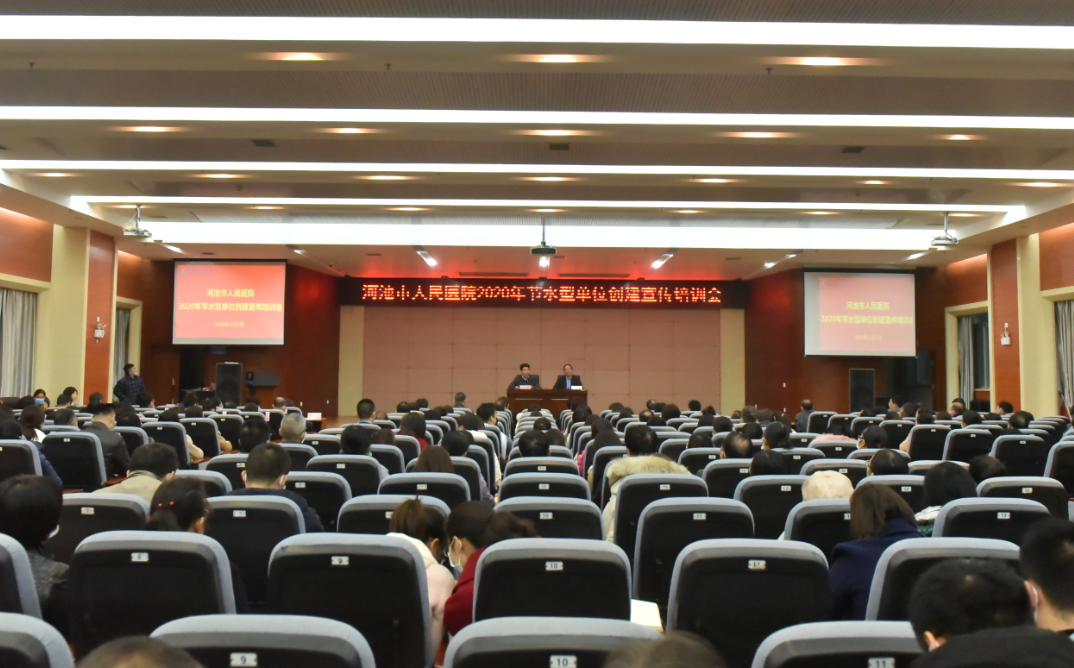 为深入推动医院“节约用水、保护水资源”节水型单位建设工作,发挥公共机构节约用水示范带头作用,12月2日,我院在门诊综合大楼23楼多功能会议厅召开了2020年节水型单位创建宣传培训会。
