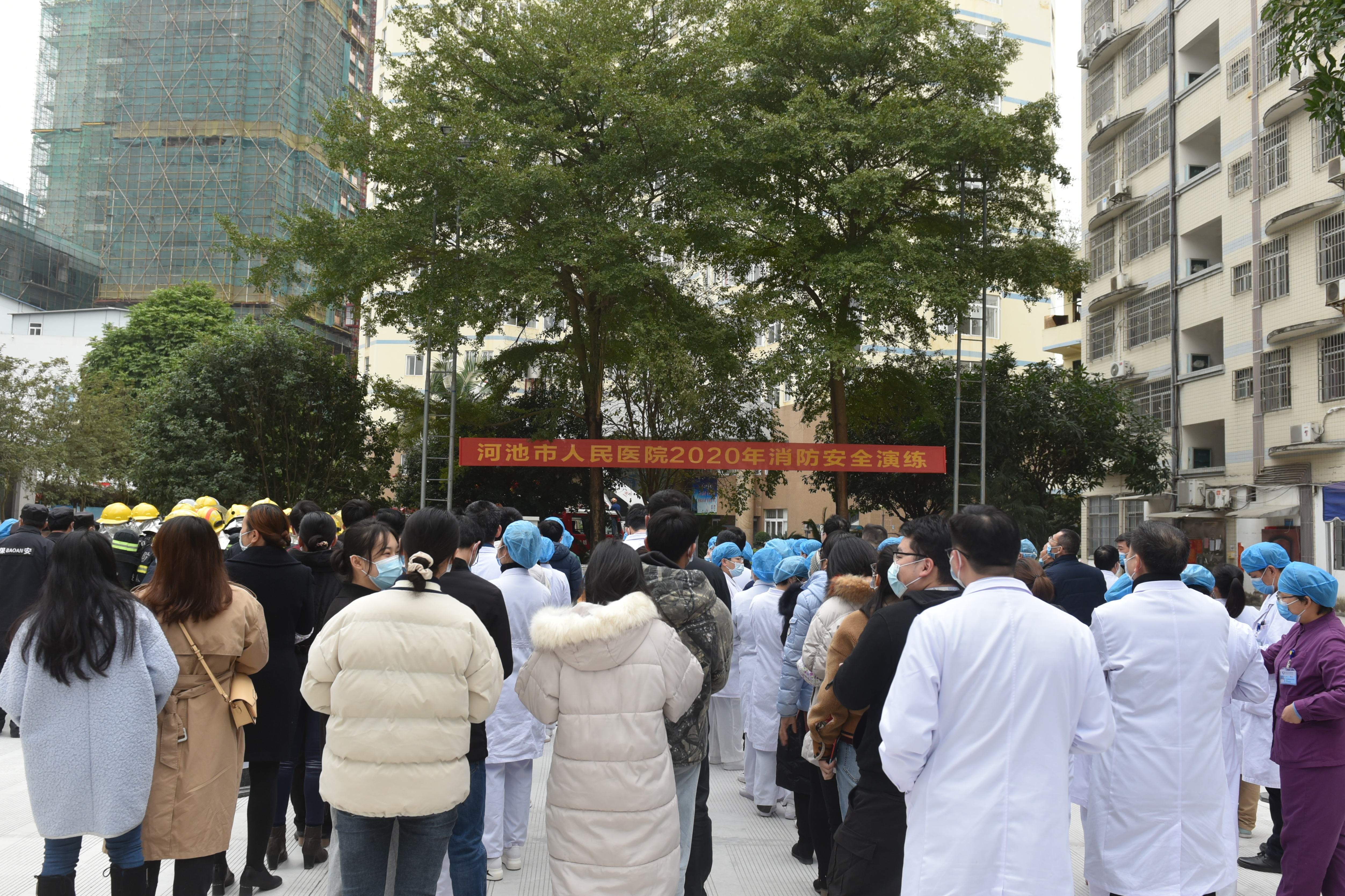 12月9日,我院联合河池市金城江区消防救援大队,在医院外科楼开展了大型消防应急演练。河池市卫生健康委调研员韦寿繁、金城江区消防救援大队长唐朝东到场观摩指导,市人民医院副院长韦仁杰主持演练。