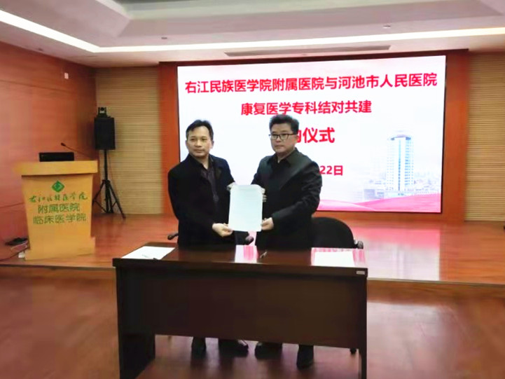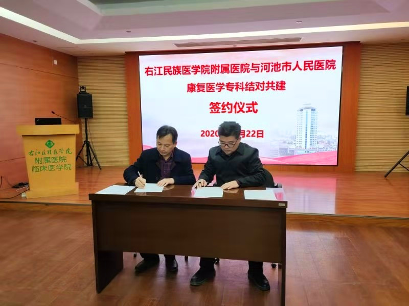 12月22日,我院党委书记韦义甜带队到右江民族医学院附属医院与右江民族医学院附属医院签订了康复医学专科结对共建协议。