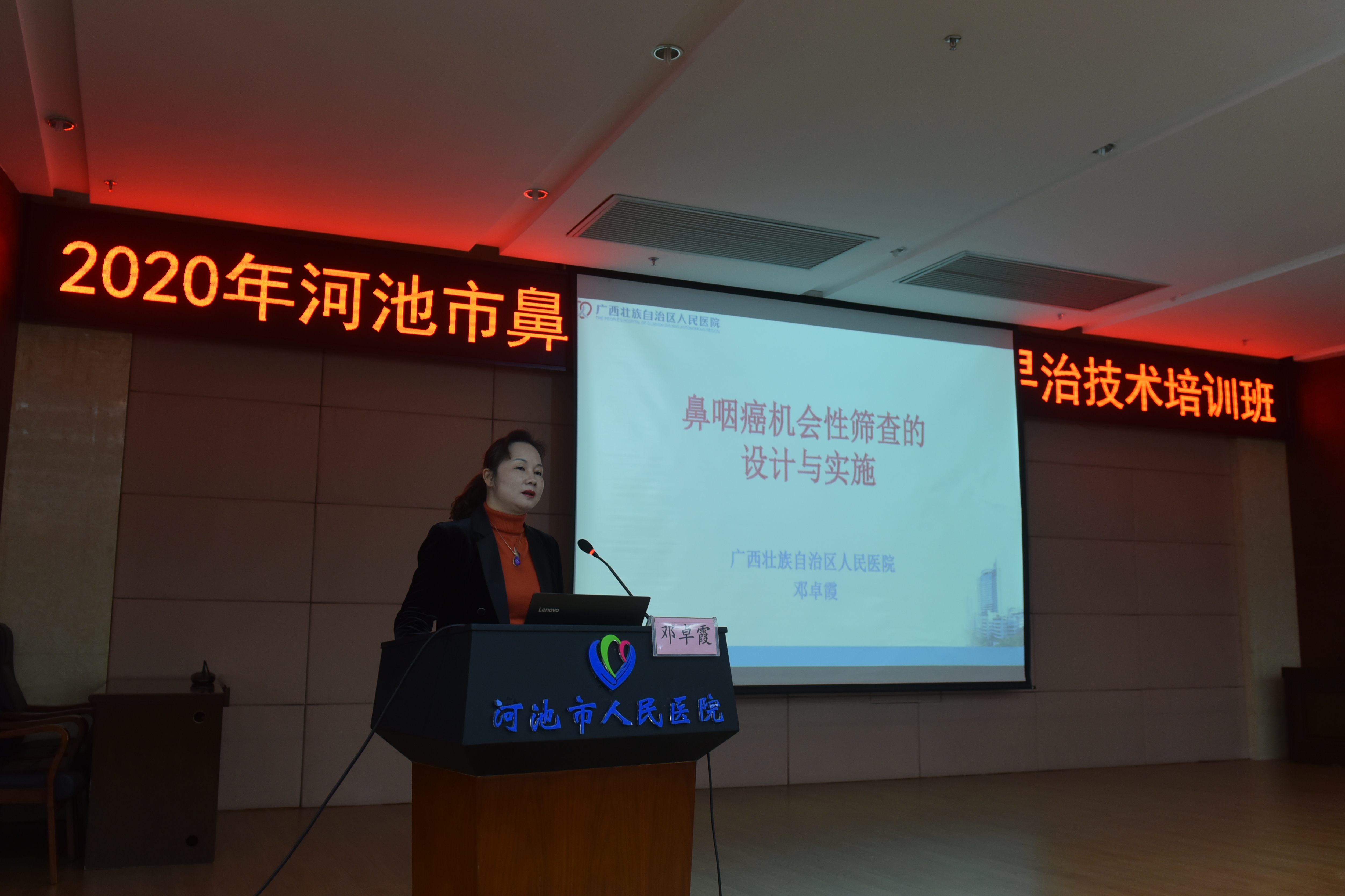 2020年12月26日,由河池市医学会主办、我院承办的“河池市医学会耳鼻咽喉专业委员会年会暨河池市鼻咽癌机会性筛查及早治技术培训班”在我院圆满举办。河池市各级卫生医疗机构耳鼻咽喉科、体检科、肿瘤科、检验科、病理科主任、临床医疗骨干共200余人参加培训班。