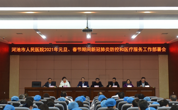 12月30日,我院在门诊综合楼23楼多功能厅召开2021年“两节”期间新冠肺炎防控暨安全生产工作部署会。院领导班子成员及全院中层干部参加会议。院长唐秀革主持会议。