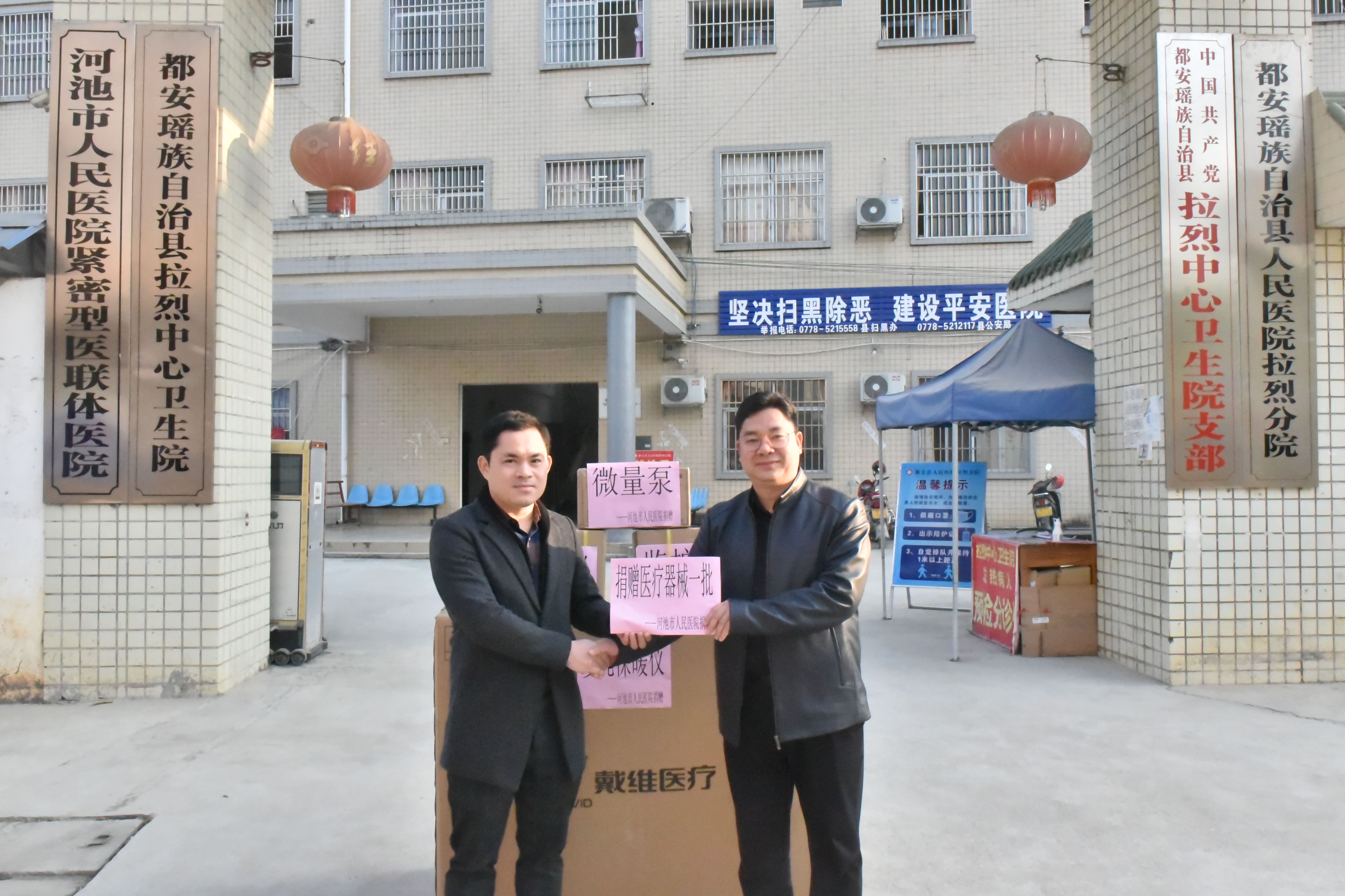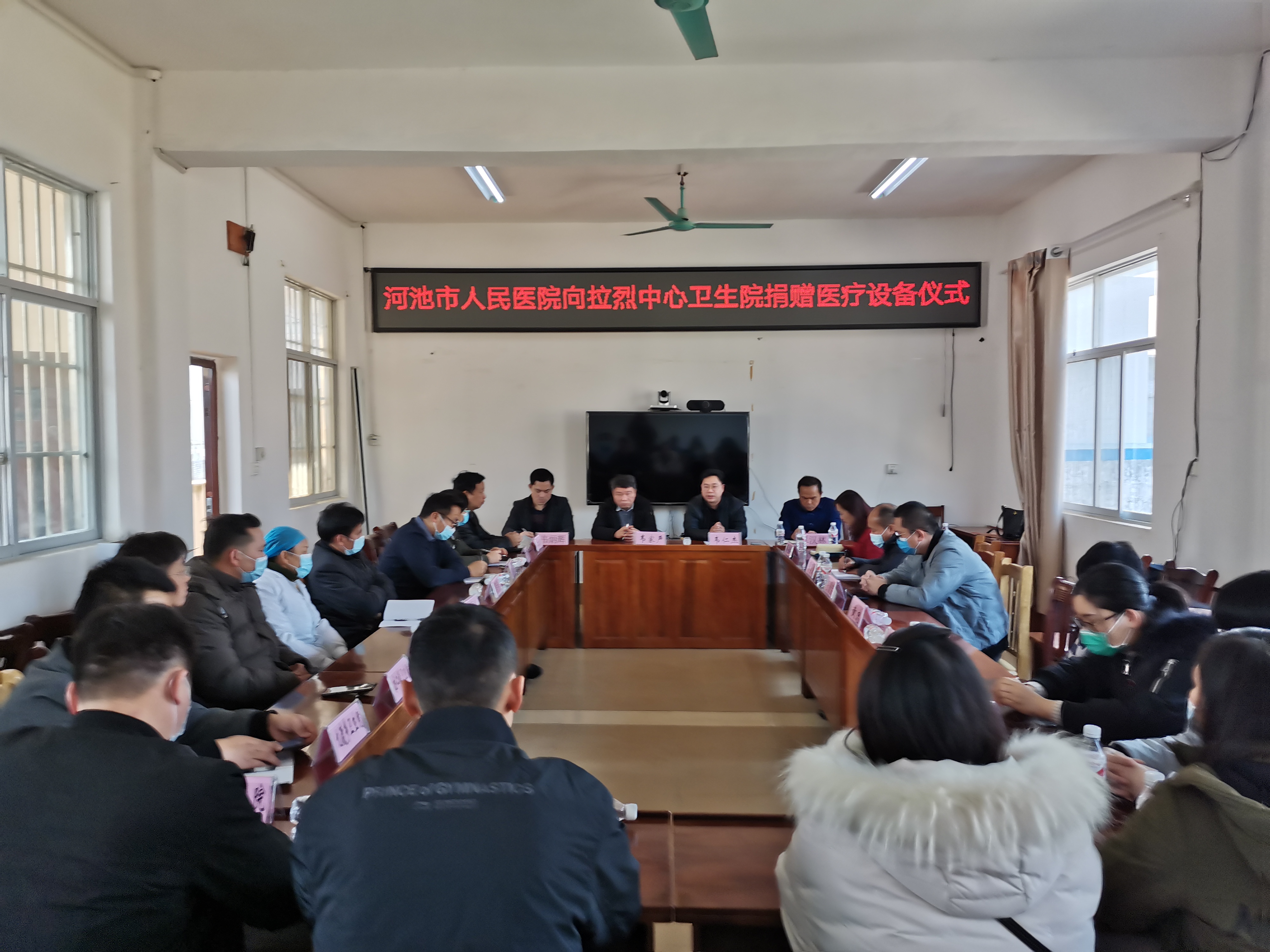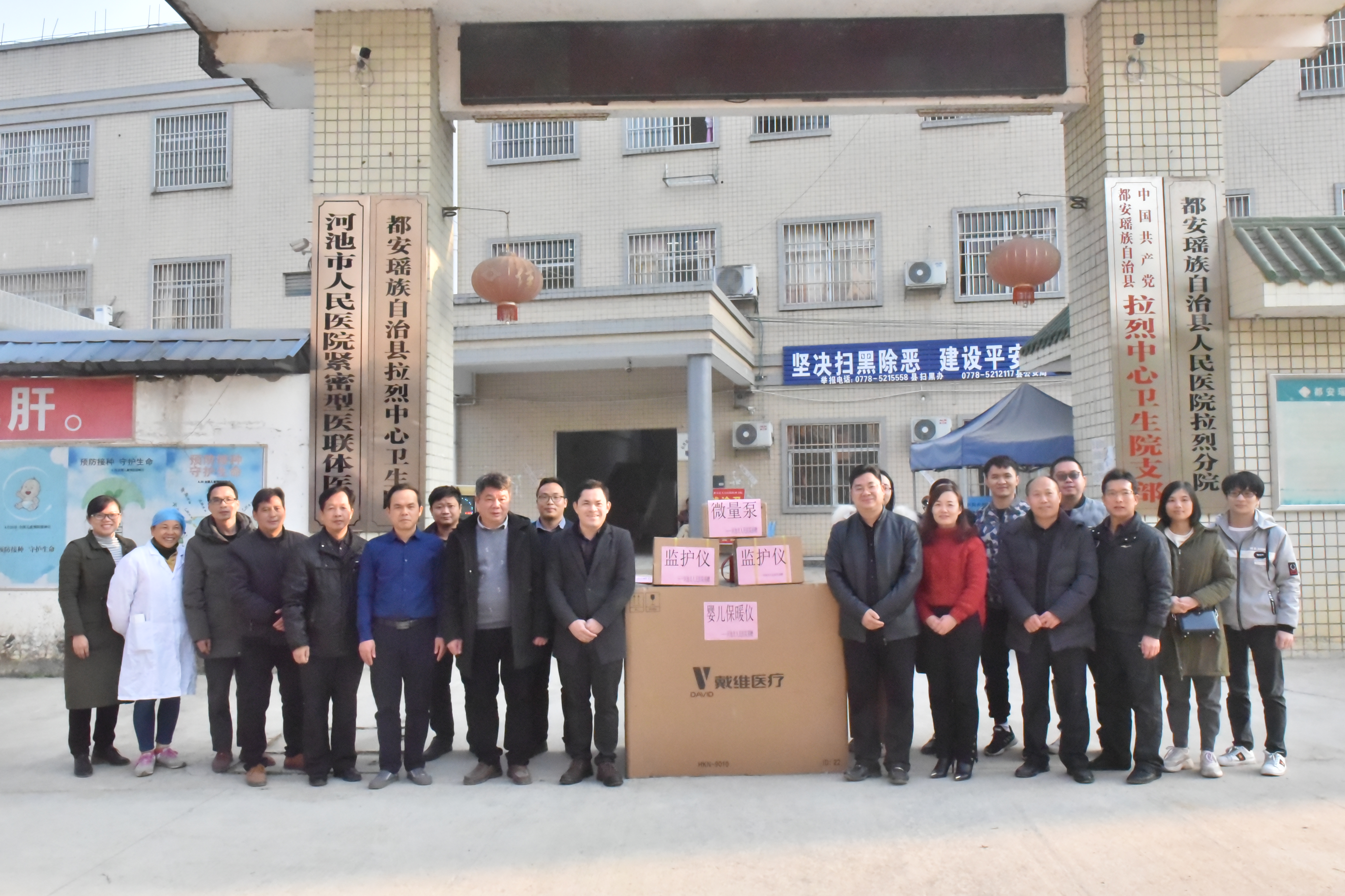 1月4日下午,我院到都安县拉烈中心卫生院开展医联体工作暨医疗设备捐赠仪式,向都安县拉烈中心卫生院捐赠了一批医疗设备。