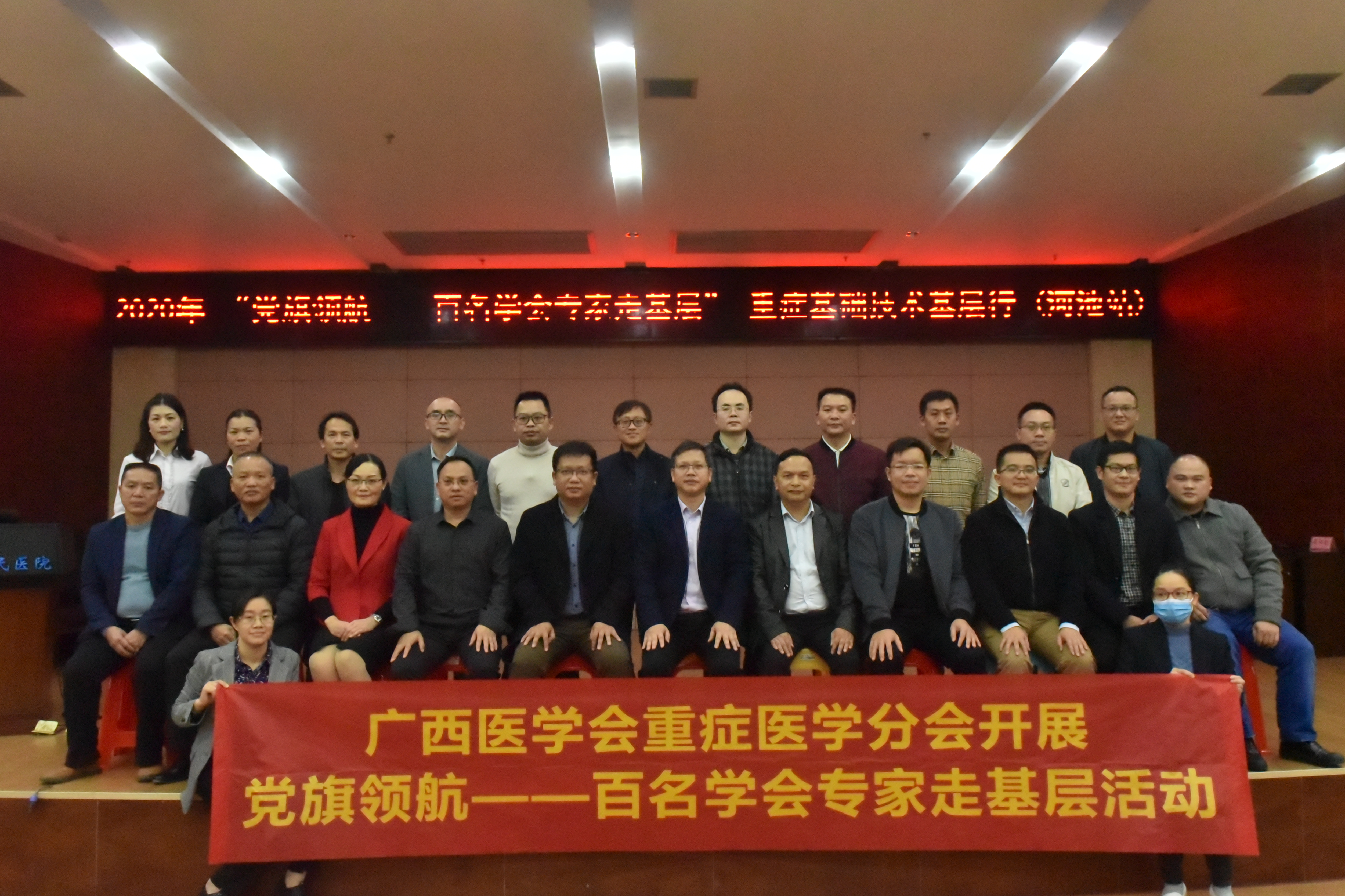 为进一步提升广西区内重症医学整体水平,提高重症医学科医生的临床诊治能力,2020年11月25日,由广西医学会主办,广西医学会重症医学分会、广西壮族自治区人民医院承办的“党旗领航——百名学会专家走基层”重症基础技术基层行(河池站)在我院成功举办。