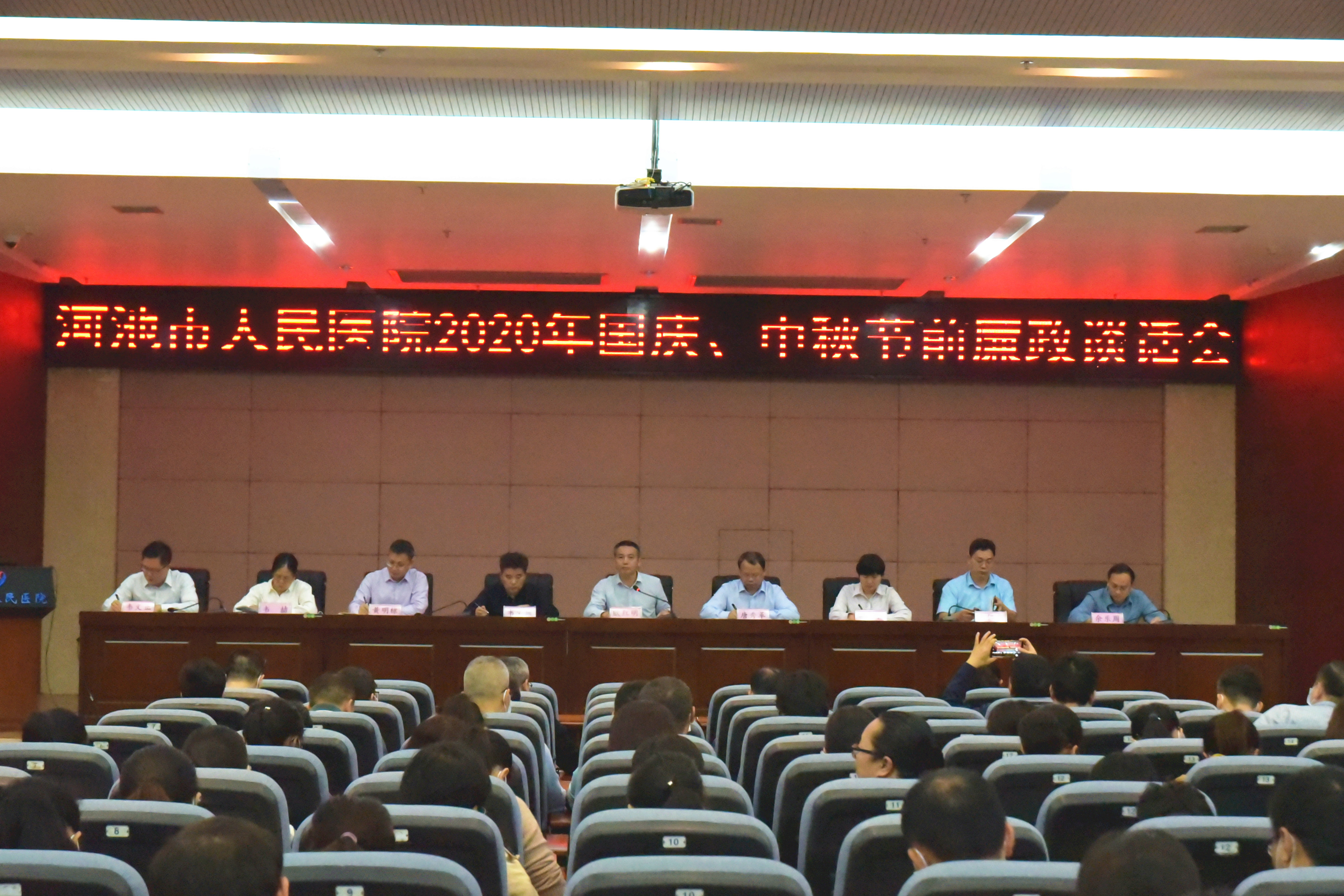 在中秋、国庆双节来临之际,为进一步加强党风廉政建设和反腐败工作,增强干部职工廉洁自律意识,9月28日下午,我院在门诊综合楼23楼会议室召开2020年国庆、中秋节前廉政谈话会。河池市纪委监委驻市卫健委纪检监察组组长欧红明作廉政谈话。医院领导班子、全院中层干部参加。