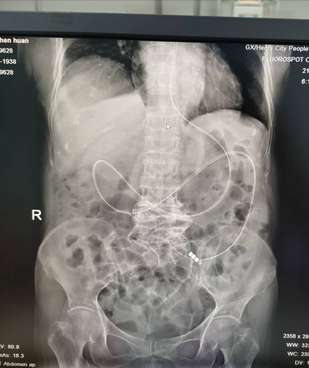 据了解,81岁的甘奶奶因自发性蛛网膜下腔出血被家属送入我院神经外科,入院时患者病情平稳,但因鼻胃管返流、反复呕吐不能正常进食,身体十分虚弱,仅靠静脉补充营养液难以达到人体每日所需营养标准。经神经外科罗铸主任、盘丽华护士长及科室医护团队讨论,决定给患者行鼻空肠管置管术输注肠内营养液。