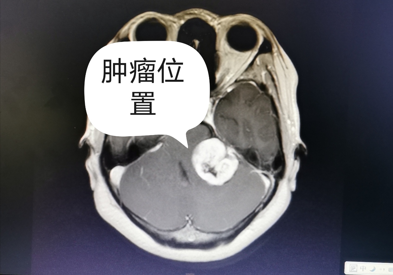 40岁的韦女士因左耳耳鸣伴右侧面部麻木1年余,在家属陪同下来到我院神经外科就诊。行头颅CT及磁共振检查提示左侧桥小脑角区占位,肿瘤位于小脑幕以下,基底部位于内听道,与听神经、面神经、三叉神经紧密相连,血运丰富,大小约为3.5cm×3.0cm×1.6cm。需要尽快手术治疗。术前,神经外科医疗团队根据患者的肿瘤位置、大小,性质和颅神经保护等方面进行全面的评估和讨论,制定出最适合患者的治疗方案,在显微镜下为患者进行肿瘤切除术。术后患者面部麻木症状明显好转,病理诊断提示神经鞘瘤,患者的听力在进一步康复治疗中。