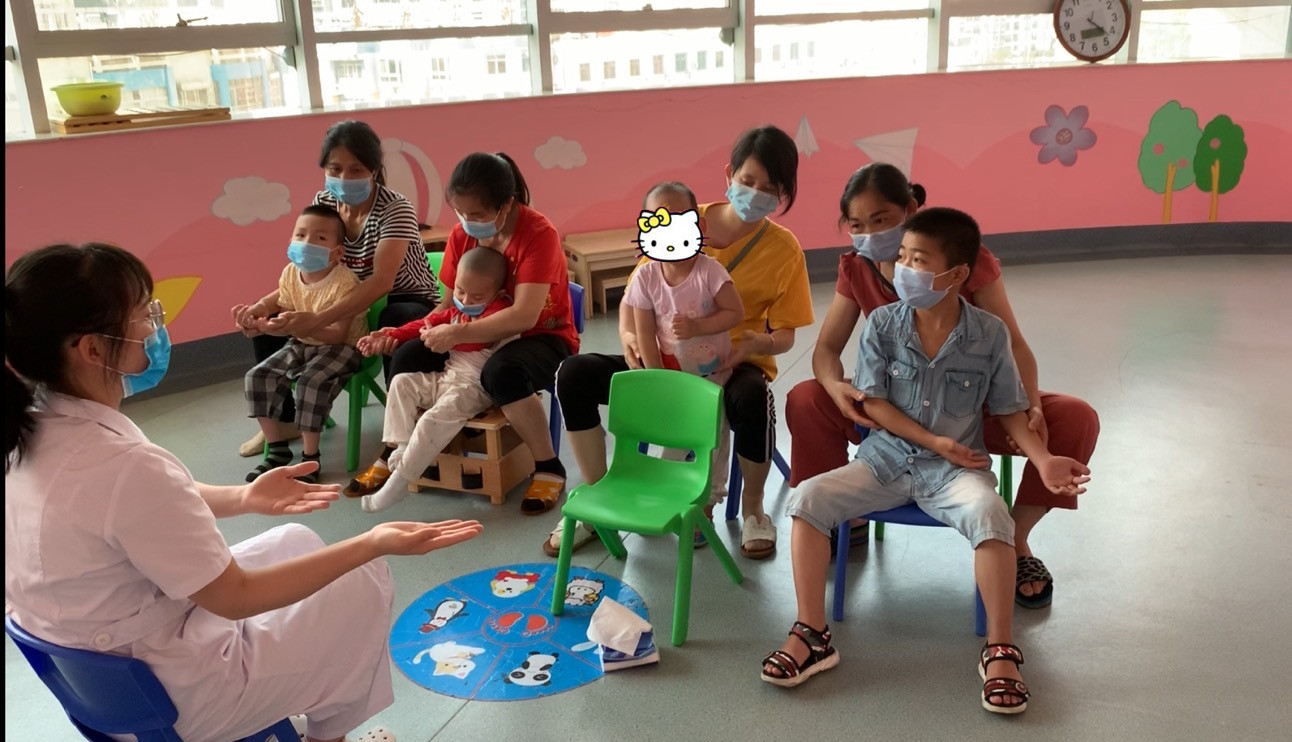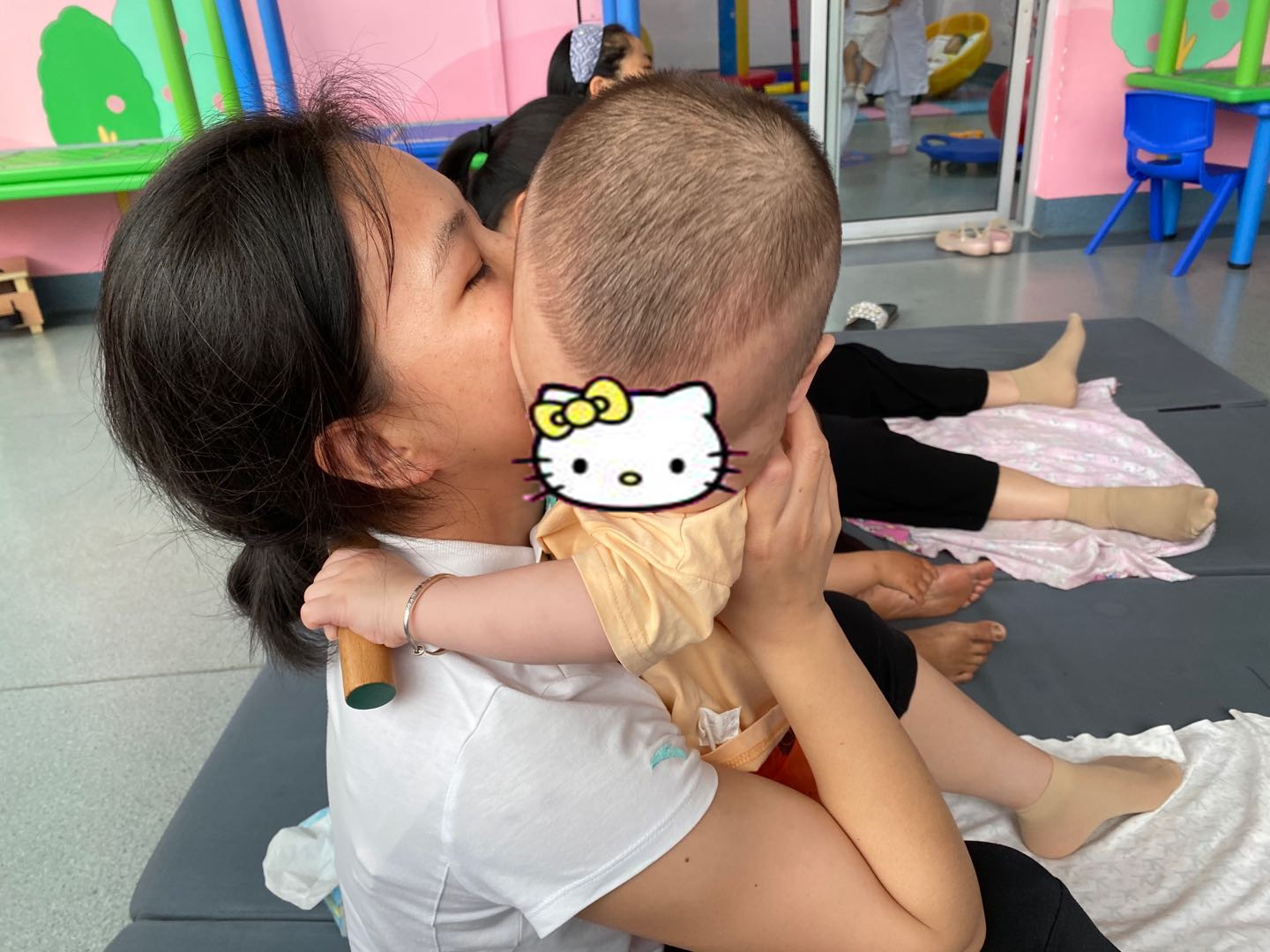 在这样一个爱的节日里,“爱”的抱抱和“爱”的亲吻,也是对妈妈表达感恩之情的美丽方式。在引导式教育课上,儿童康复科的治疗师们通过动作示范,给孩子们展示了可以通过“拥抱”和“亲吻”来表达对妈妈的爱。孩子们尽管肢体动作不够协调,理解能力及语言能力受限,在引导和辅助下,都很开心地与妈妈们完成了互动。