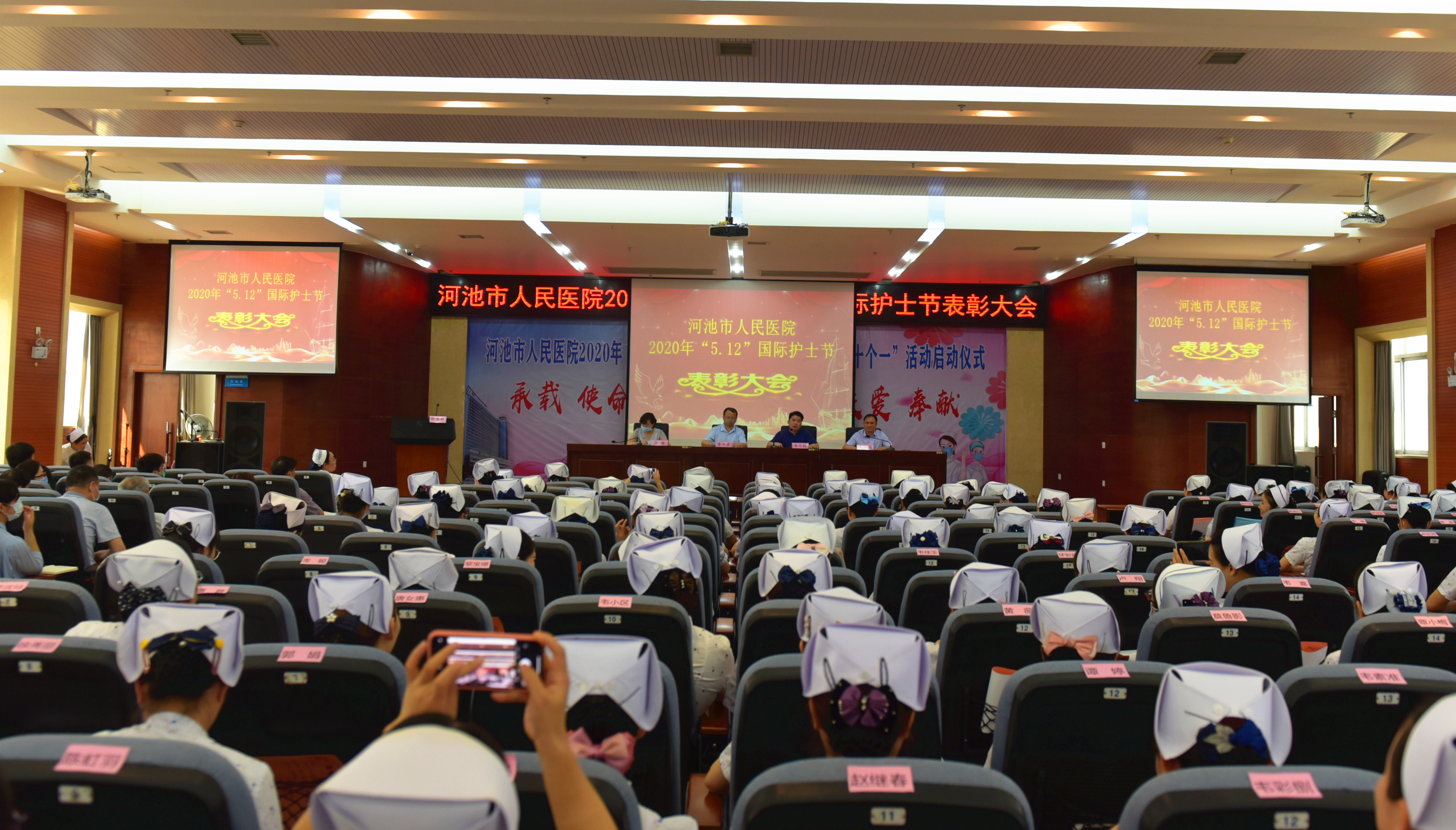 2020年5月14日,我院在门诊综合大楼23楼多功能厅举行纪念第109个“5.12”国际护士节表彰大会暨“暖心服务十个一”活动启动仪式。医院领导班子、全院中层干部和护士代表共200余人参加大会。