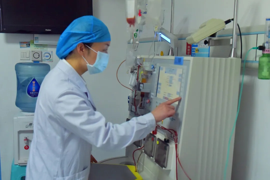 韦金华主任介绍,血细胞分离术是通过血细胞分离机来实现的,该设备的工作原理是通过物理性、智能化控制有选择性的去除循环血液中的有形成份,该技术安全、有效,可以针对不同病人、不同病种,采集不同的细胞种类,如去除体内明显增多的红细胞、白细胞和血小板,采集外周血干细胞用于自体或异基因造血干细胞移植等,对真性红细胞增多症、原发性血小板增多症等治疗具有重要的作用。此外,还可以进行血浆置换,用于治疗重症系统性免疫性疾病;对各种中毒抢救如严重一氧化碳中毒、血栓性血小板减少性紫癜等病人也有很高抢救性治疗价值。