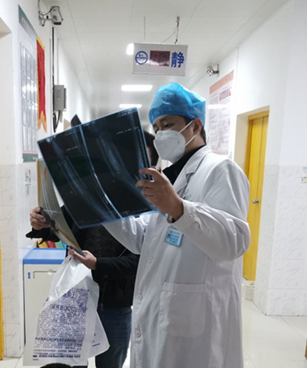 当听到都安疫情需要支援,他主动请缨,面对肆虐的疫情,哪怕再危险,他也毫不退缩。2月10日下午,他到达都安县妇幼保健院后,第一时间投入到紧张的工作当中。工作中,他进行详细的体格检查,全面的问诊,利用病房有限的资源开展诊疗工作,病房没有的牵引装置,他便动手自己造。同是医务人员的妻子每次与他的通话,总是那句“家里都好,你放心”!他5岁的儿子理解了爸爸的辛苦,变得听话懂事,还希望自己长大后成为像爸爸一样的大英雄。面对感染的危险,工作的艰辛,周医生说,“只要都安人民需要,作为医者我当义不容辞。”