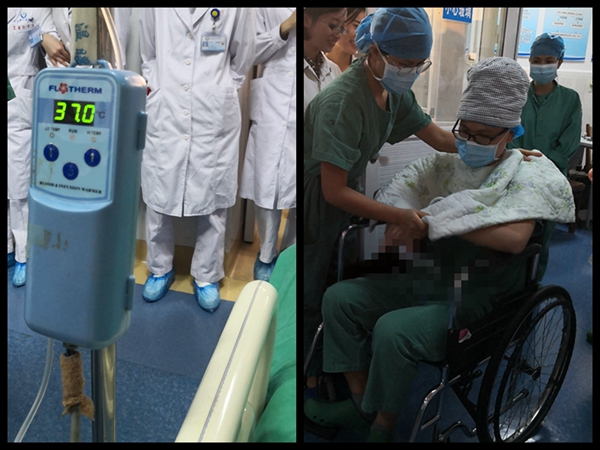 结合医院及患者实际情况,演练脚本设定为一位80岁的患者,在全麻下行前列腺电切术,因高龄、体质消瘦、虚弱、术程较长、且术中持续大量冲洗液进行冲洗,麻醉医生、巡护护士通过在术前访视环节了解罗大爷的各项生命体征及生理情况。针对患者的特殊情况,为防止术中出现低体温的情况,医务人员在术中使用温水毯、棉被、37°冲洗液及输入液体,保护患者的自身能量,并将室内空调温度调至24-26°,防止其热能过多损失;术后进入复苏室,持续给与空调、取暖器、保暖被子等措施保护患者。整个演练过程,医护人员时刻关注患者的病情及生命体征的变化,巡回护士密切观察患者体温的变化,手术团队配合默契,全方位的保障患者的安全。