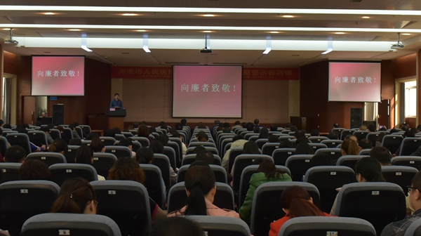 根据“不忘初心、牢记使命”主题教育统一要求,为了加强医院党风廉政建设和反腐败工作,11月26日下午,自治区检察院张坚副巡视员受邀到我院开展警示教育专题讲座,全院中层干部、党员、总住院医师和行政职能科室人员聆听报告,党委书记韦义甜同志主持会议。