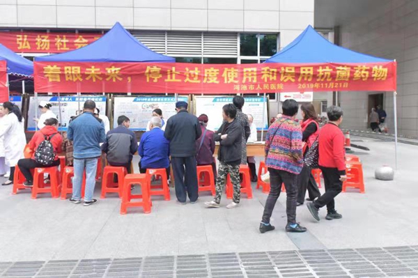 每年11月第三周是世界卫生组织确定的“世界提高抗菌药物认识周”,为进一步落实《遏制细菌耐药国家行动计划》,提高河池市合理使用抗菌药物的意识和水平,我院积极响应自治区卫生健康委医政医管处做好“2019年提高抗菌药物认识周”活动通知的号召,医院统一部署,由医务科牵头,安排药学部、重症医学科、呼吸内科、院感科及护理部等相关科室于2019年11月21日开展了一系列科普宣传和培训活动。