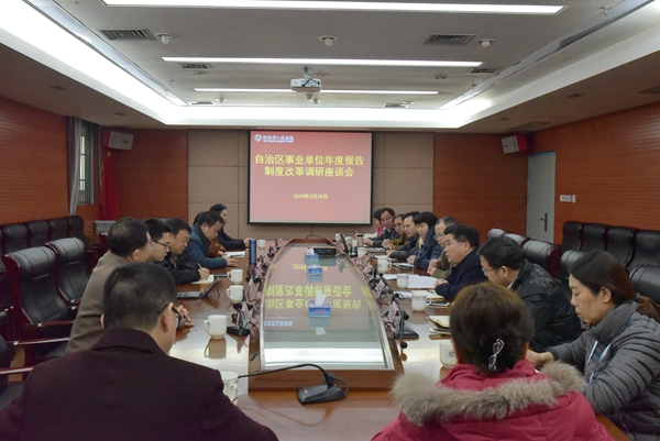 为深入推进事业单位年度报告制度改革工作,2月20日,自治区编办调研组一行4人在自治区事业单位登记管理局汪国祥局长的带领下莅临我院调研事业单位年度报告制度改革工作。我院唐秀革院长、韦义甜书记、张雅总会计师、黄明棣副院长及部分行政职能科室负责人参加了会议。