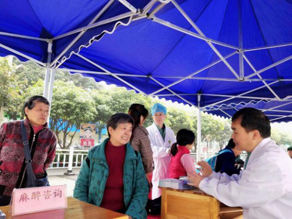 为响应中华医学会麻醉学分会号召,推动麻醉学科的发展,提高公众对麻醉学科的认知,近日,我院在门诊综合大楼前开展了“敬畏生命 关注麻醉-----安全舒适保健康,麻醉医生在身旁”主题公益宣传咨询义诊活动。