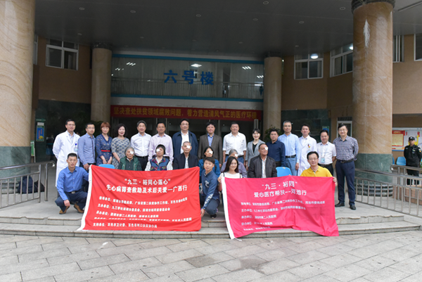 4月25日,“九三.裕同”爱心医疗帮扶河池行启动仪式在我院外科楼前举行,九三学社广东省委副主席、深圳市委主委蒋宇扬及九三.裕同慈善基金会河池帮扶工作组一行7人,我院领导班子、医务科、眼科及部分白内障患者一同参加活动。
