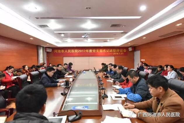 在认真听取报告后,韦义甜书记依次对各党支部书记的述职作出点评,要求各支部书记要重视基层党组织建设,进一步增强政治意识,不断提升党员的理论素养,发挥党员的先锋模范作用,发挥党支部的战斗堡垒作用,紧密结合医院工作实际,用扎实的工作和昂扬的姿态学习宣传贯彻党的十九大精神,以实际行动推动医院党组织建设和内涵发展。随后,与会人员对各支部书记一年来的工作进行民主测评。