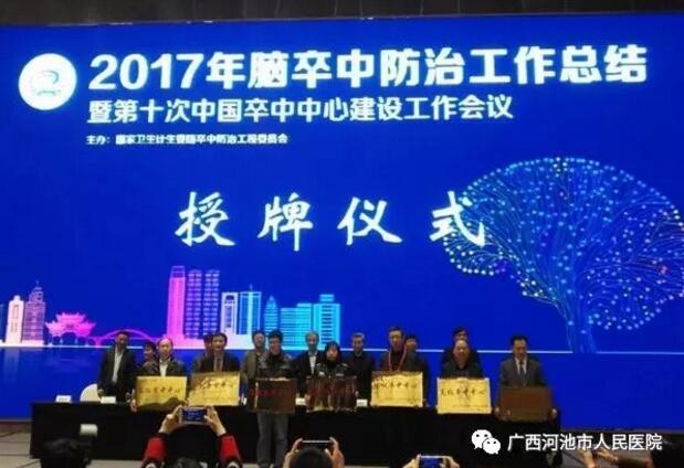 五、河池市人民医院被国家卫生计生委授予“国家高级卒中中心”建设单位称号