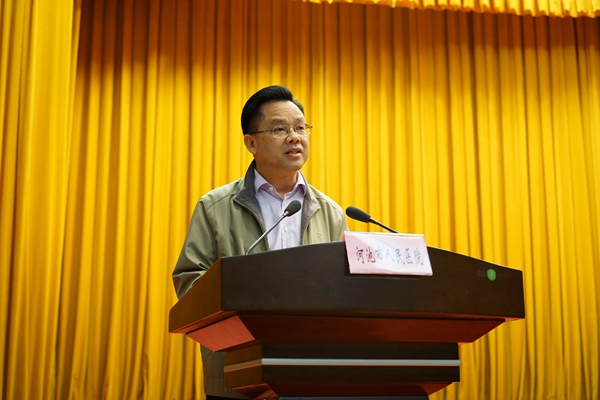 梁涛院长在会上从运行机制、分类施策、合作平台等几个方面系统、全面的介绍了我院医联体建设的先进经验。梁院长表示,面对河池市及周边地区交通不便、高端医疗资源稀缺、基层医疗机构技术薄弱等现实难题,医院着力推进医联体建设,逐渐形成了一条以远程医疗为突破,以互联网为合作纽带,多种医联体模式协调推进的新路子。梁院长介绍,为了满足各级医院的多样化需求,医院重点打造以“一个联盟、两个社区、三个紧密型医联体、四个市级专科联盟”为骨架的医联体框架,用多种医联体模式,解决多层次医疗协作需求,让医改红利惠及更多百姓,助力医改和“健康河池”建设。