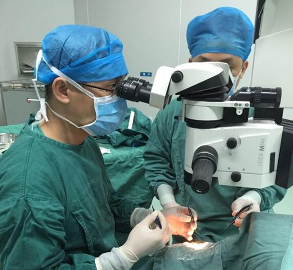 该患者在工作时敲打铁钉,不慎被铁钉反弹击中左眼部,导致左眼疼痛、畏光、流泪,并出现视力下降。听说,市人民医院有眼科专家长期在罗城坐诊,该患者来到了罗城县人民医院治疗,经检查诊断,患者左眼角膜穿通伤并有虹膜嵌顿,如果不马上进行手术治疗,患者的视力将会受到严重影响,甚至会导致失明!得知有关情况后,欧主任立即组织该院眼科医疗团队,急诊行左眼角膜修补术+虹膜复位手术。术后,患者视力恢复良好,由术前视力0.1,术后一周视力恢复达到0.8,患者非常高兴和满意!