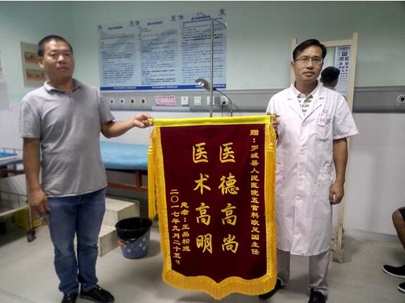 近日,市人民医院派驻罗城县人民医院眼科专家、罗城县人民医院五官科业务主任欧足国收到患者赠送“医德高尚 医术高明”锦旗,以表达对欧足国医师的感激、感恩和感谢!