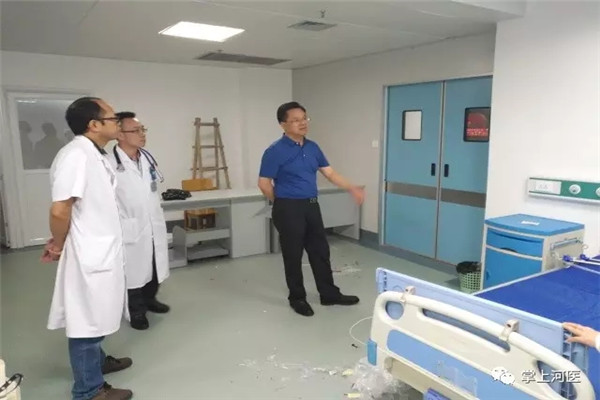 为落实市卫计委交由完成的河池市脑卒中医疗质量控制中心建设任务,提升医院乃至整个河池市神经内科急危重症救治水平,根据医院十三五发展规划和卒中中心建设要求,今年8月,市人民医院决定在神经内科二病区设立神经重症监护室(NICU)。在之后的一个月时间当中,院长梁涛多次带领相关科室负责人到神经内科实地调研,现场解决NICU建设存在问题,同时全院各部门通力协作、克服重重困难,最终以难以置信的“河医速度”完成全部建设,确保了NICU按期投入使用。