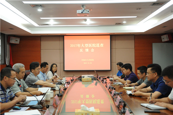 5月23日下午,大型医院巡查汇报会在门诊综合楼22楼会议室举行。市卫生计生委副主任蓝如料、医政医管科科长谢君理、我院领导班子以及相关职能科室负责人参加了汇报会。会上,梁涛院长对巡查组的到来表示热烈欢迎,并代表院领导班子向巡查组汇报了医院基本情况及自查情况,并希望专家对我院工作进行指导,提出宝贵意见。