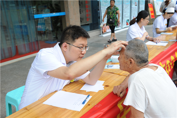 2017年6月6日是第22个全国爱眼日,今年的主题是“目”浴阳光,预防近视。为普及预防近视、眼疾防治康复相关知识,提高广大群众对眼的健康保健意识,6日上午,由我院眼科主办的2017全国爱眼日义诊活动在门诊综合楼前成功举行。义诊现场,医护人员为广大群众提供免费视力检查、电脑验光、医师诊疗、宣传爱护眼睛常识等服务,吸引了众多群众前来咨询、就诊,义诊活动当天共计义诊人数200多人,发放眼病宣传手册500多份。