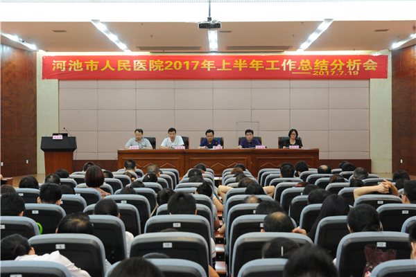 最后,梁涛院长系统的分析了我院上半年的发展情况。他指出,2017年是河池市城市公立医院综合改革的开局之年,也是我院提质发展的关键之年,上半年医院的工作虽然取得了一定的成绩,但也面临着不少的问题和困难。他强调,面临新的医改形势和不断增加的行业竞争压力,下一阶段全院上下一定要主动适应医改政策,落实转型要求,抓住工作重点、强化责任担当,把滞后的工作追上来,把工作的进度再往前赶,各科室要强化协调配合,在稳健中求增长,在发展中寻突破,为顺利完成医院全年发展目标而努力奋斗!(曾得科)