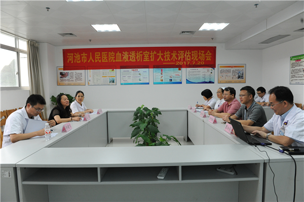 为满足肾病患者的治疗需求,改善就医环境,我院拟扩建血液透析室,将血液净化治疗设备由29台扩大至36台。7月20日上午,自治区卫计委委托右江民族医学院附属医院肾内科王洁主任一行3人,到我院就血液透析室扩大申请进行现场评估。唐秀革副院长,肾内科、质控科、护理部、医械科、院感科等部门负责人陪同评估检查。