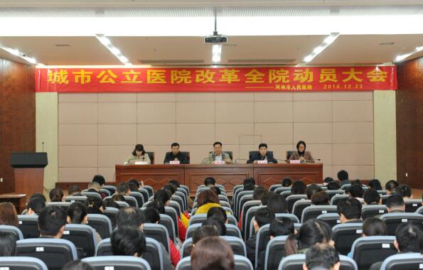 12月23日下午,我院在23楼会议室召开城市公立医院改革全院动员大会。会议由杨立倩副院长主持。院领导、全院中层干部、行政职能科室全体职工及临床医技科室部分骨干参加会议。