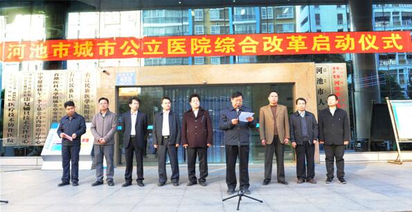 12月30日上午,河池市城市公立医院综合改革启动仪式在我院举行,标志着我市城市公立医院综合改革工作正式启动。市卫计委韦东禄主任主持仪式。