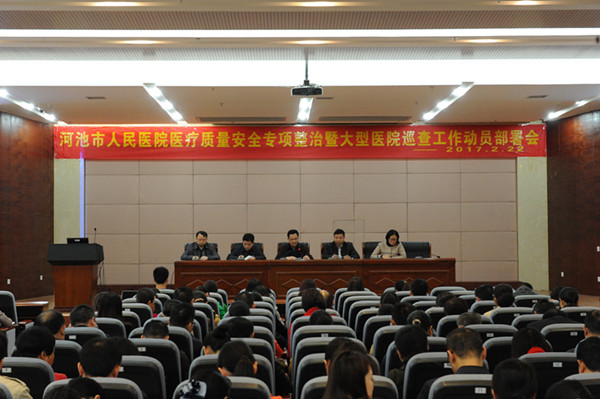 为加强我院医疗服务质量,防范医疗安全风险,进一步强化依法执业意识,根据上级卫生行政主管部门的统一要求,2月22日下午医院组织召开了医疗质量安全专项整治暨大型医院巡查工作动员部署会。院领导班子、全院中层干部、各临床医技科室业务骨干近400人参加会议。