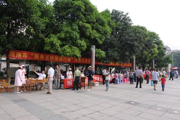 10月13日早上,医务科、保健科等部门组织了我院内科、外科、儿科等特色专科的专家到文化广场参加“服务百姓健康行动”金城江区义诊活动。医务人员通过血压测量,及对一些常见病、慢性病的初步诊断,为老百姓提供治疗方案或就诊建议;通过发放健康科普宣传资料,帮助老百姓了解医学常识和健康知识,向社会倡导了积极健康的生活方式。