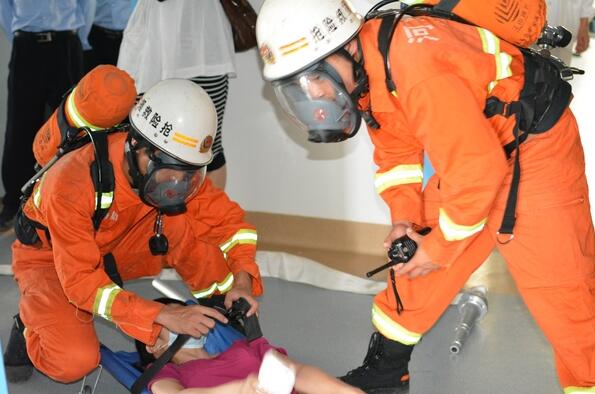 为进一步强化参演人员对消防知识的了解,消防官兵还向参演人员现场讲解灭火器、高压水枪的使用方法以及发现火灾如何进行自救和逃生等消防常识,部分医务人员还现场用干粉灭火器进行实际操作培训。