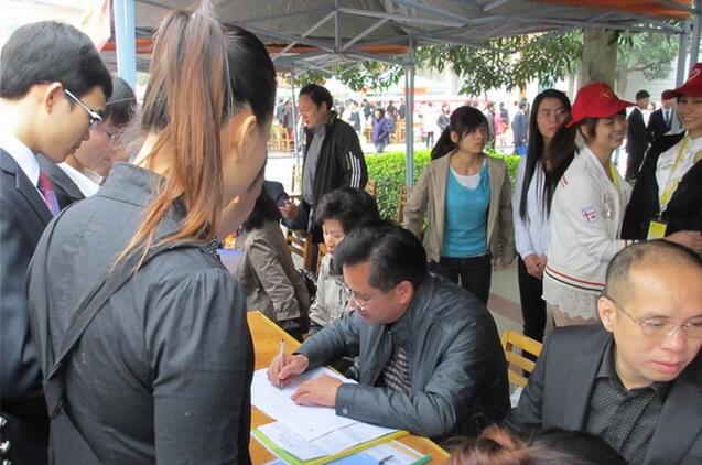 第二天早上9点我院又参加了右江民族医学院在学院操场上举行的大型综合招聘会。同学们早早的就在我院招聘展位排队等候,还有不少昨天被淘汰的同学依然坚持过来尝试最后的机会,而一些优秀的同学也得到了大家的肯定。在短短的二个小时的时间内,又与15名同学当场签订了协议。