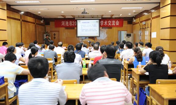 河池市耳鼻喉科学术交流会于2011年9月17日在我院三楼大教室隆重召开,来自全市各县(市)9家医院及2个乡镇卫生院共60多名耳鼻喉科专业人员参加会议。会议由我院耳鼻喉科主任韦善文主持,刘景发副院长作会议致辞。