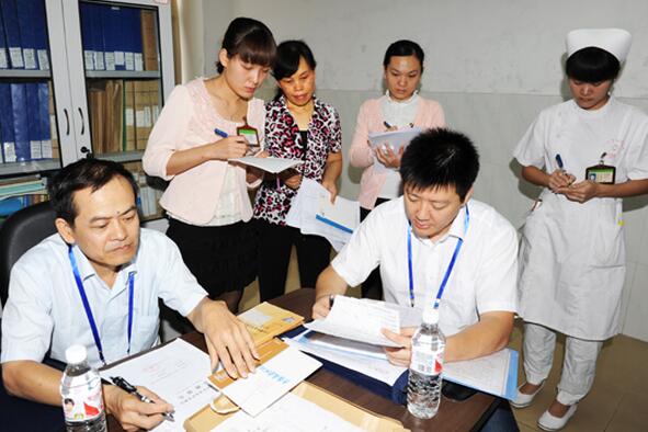 督查组专家深入心血管内科、新生儿科、骨科、供应室、胃镜室等科室,对照“优质护理服务示范工程”考评标准、护理质量管理规范和院感专项督查细则,通过实地查看资料、查看病区管理情况、访谈了解等形式,对我院优质护理服务和院感工作开展情况进行了细致的检查。