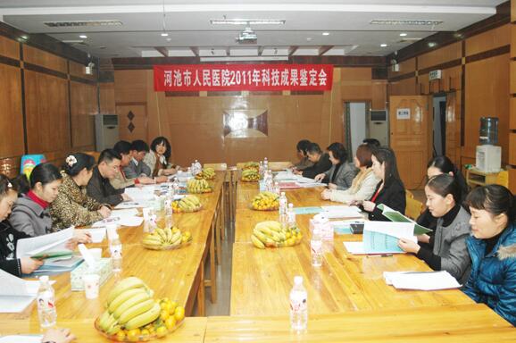 2月25日,由河池市科技局主持的2011年科技成果鉴定会在我院学术报告厅举行。此次鉴定会邀请了广西区人民医院、广西医科大学第一附属医院、广西医科大学附属肿瘤医院、柳州市中医院等单位的31名专家作为评委,对六项科技成果进行了集中鉴定。