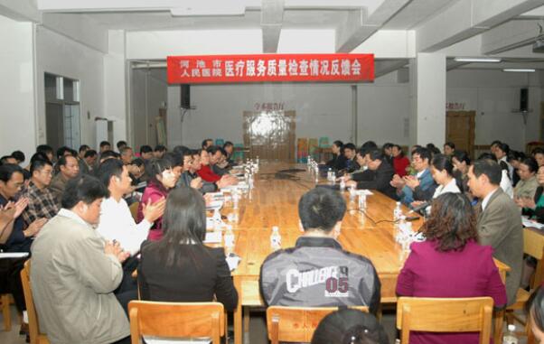 6日下午,检查组在我院三楼大教室就我院医疗服务质量检查情况进行了反馈。参加会议的人员有市卫生局副局长梁涛、医政科科长蓝如料以及全院副护士长以上中层领导干部等。检查组对我院高度重视加强医疗服务质量的态度表示赞赏,对开展的“先诊疗,后结算”、落实患者安全目标、手术安全防范、护理管理等亮点工作给予了充分肯定。同时也指出了检查中发现的问题和不足,并给予了中肯的意见和建议。