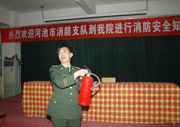 廖锡强处长结合河池地区发生的典型火灾实例,逐一对预防火灾的基本常识,火灾发生、发展的特点等方面进行了详细的讲解,传授了消除火灾隐患、防范火灾措施、初起火灾的扑救方法以及如何组织人员疏散、火场自救逃生等知识,指出实际生活中大家的消防误区,并为大家现场演示了正确使用消防工具的方法。培训结束后,党委副书记、纪委书记、副院长谭俊扬要求全院职工认真学习消防安全相关知识,熟练掌握火灾事故的预防、控制、扑救措施以及人员自救、救助技能,切实保障生命和财产安全。