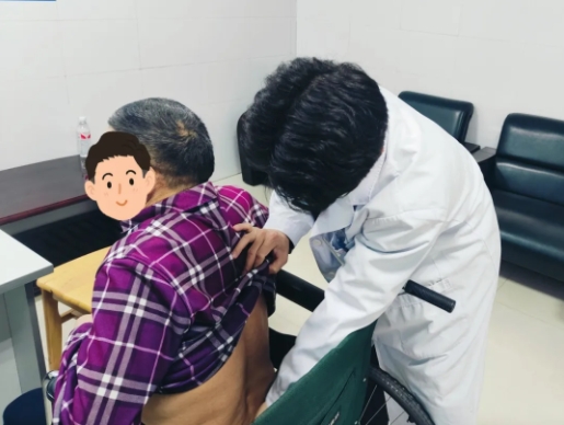因不慎跌倒至骶尾部疼痛3天的患者秦先生来到医院就诊,他介绍自己的症状,分诊护士初步判断评估后,推来轮椅搀扶患者慢慢坐下,并引导患者在移动诊室等候,又立即请来相应科室医生进行诊治,避免了跑上跑下的麻烦,同时也减少了就诊流程。