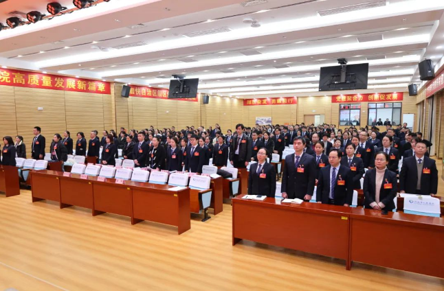 共青团河池市人民医院第六次代表大会开幕式在雄壮激昂的国歌声和青春洋溢的团歌声中开幕。会上,医院党委副书记、院长唐秀革宣读市直属机关团工委关于河池市人民医院团委换届选举的批复意见。
