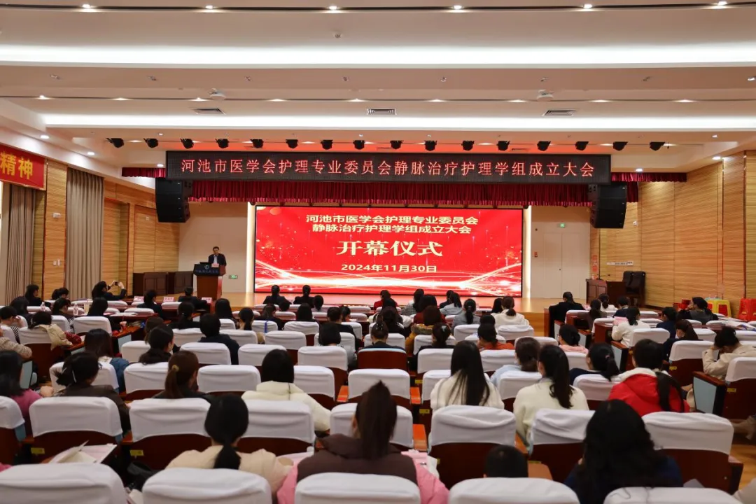 为提高静脉治疗专业技术水平,推动河池市静脉治疗护理事业的发展,11月30日,由河池市医学会主办、广西医科大学第一附属医院河池医院·河池市人民医院承办的河池市医学会护理专业委员会第一届静脉治疗护理学组成立大会暨河池市2024年静脉治疗护理新进展学习班在教学综合楼5楼学术报告厅顺利召开。来自全市各级医院200余名护理人员参加会议。