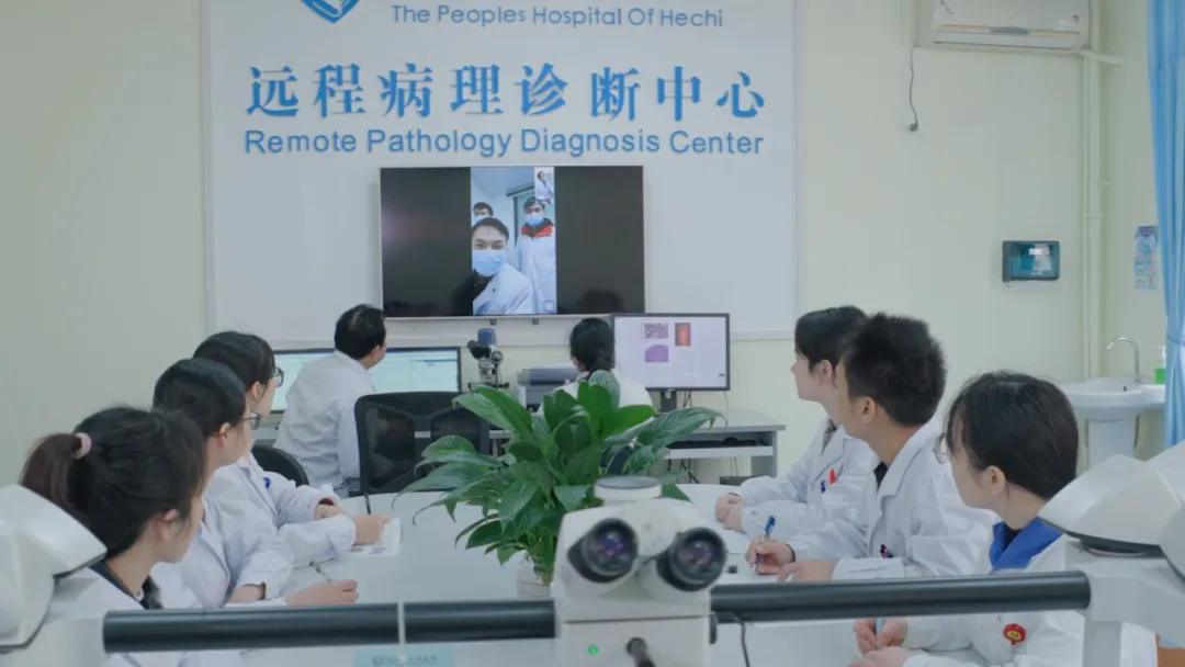 河池市人民医院借助远程诊疗系统让病理诊断“上云端”,形成了上下联动、分级负责的病理服务新格局,让数据多跑路,让患者少跑腿,致力服务全市患者。据统计,今年以来,开展辅助诊断1084例次,其中远程病理诊断405例次,常规标本的诊断报告出具时间稳定在3天以内,大大提升了病理诊断效率。