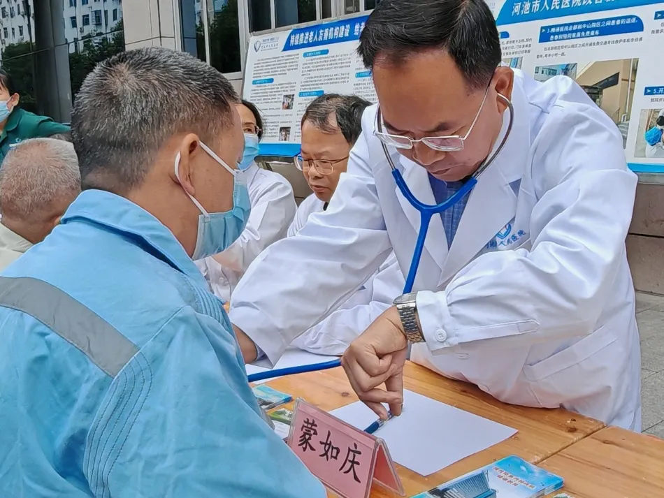 活动现场,河池市人民医院党委副书记、院长唐秀革,副院长蒙如庆、广西医科大学第一附属医院杨美玲副主任医师(目前担任河池市人民医院呼吸与危重症医学科执行主任)、呼吸与危重症医学科韦庆主任医师、邓庭军副主任医师等专家团队为前来就诊的群众答疑解惑进行日常健康指导、查体诊治。此外,还提供肺功能检查、慢阻肺全程管理、肺康复指导、免费测量血压、测脉率、心率、指脉氧等服务,并进行心肺复苏急救技术现场教学,让大家能够正确掌握心肺复苏的急救技能。