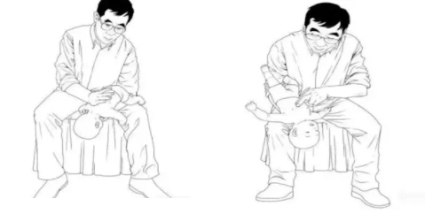 如果是1岁以下幼儿,应立即把孩子抱起来,一手固定幼儿头颈部,面部朝下、头低臀高,使其身体依靠在大人膝盖,另一手掌跟部连续叩击肩胛区5次。再将幼儿翻转成面部朝上、头低臀高位,一手食指、中指快速冲击下胸部(两乳头连线中点下方一横指)5次。两种方法反复交替进行,不停地冲击和拍打,直至异物排出。