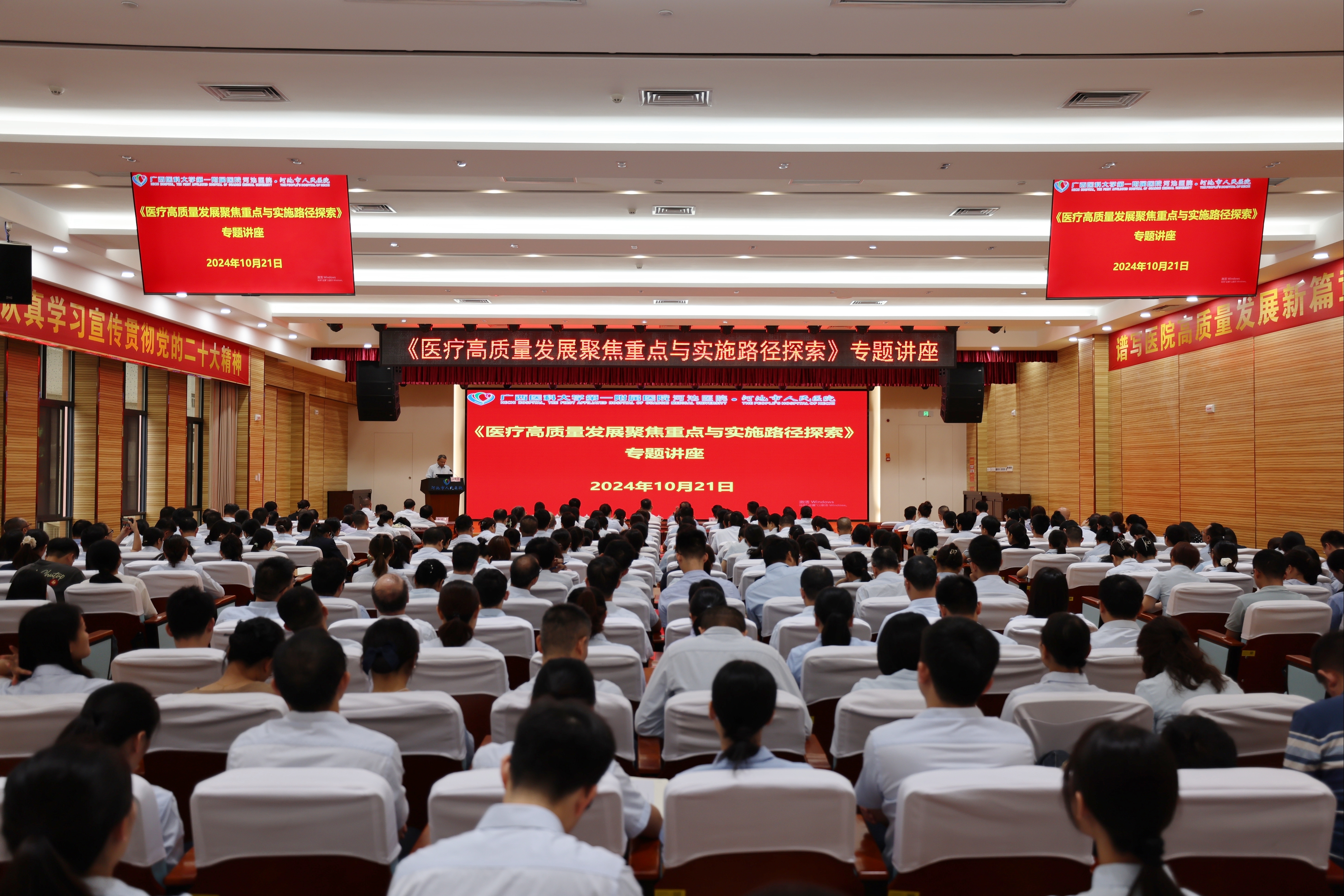 座谈会结束后,陈俊强以《医疗高质量发展聚焦重点与实施路径探索》为题,聚焦“质量与效益”,特别强调了政策引领,并就医院层面做好顶层设计、各科室层面把控好关键环节等方面提出了一系列医疗高质量发展的实施路径。他强调,在追求医疗高质量发展过程中,要全面梳理医疗服务流程,充分运用新手段、新技术、新模式,打通人民群众看病就医的堵点淤点难点,将“以病人为中心”贯穿于医疗服务各环节,提升医疗服务的舒适化、智慧化、数字化水平,为社会提供高质量、高水平、人民满意的医疗服务。