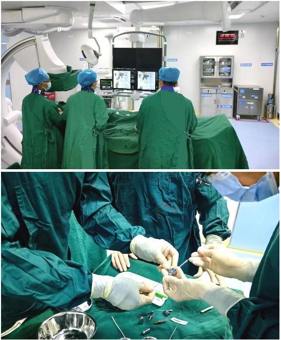 手术在数字减影血管造影技术(DSA)及心电监护下实施。术中,放射介入治疗科主任张自旺带领覃亮、蒙昌合两位医师快速完成胆管穿刺造影(PTC),确定胆管阻塞范围。随后置入鞘管,引入球囊导管,对胆总管下段狭窄段进行多次反复扩张,接着,经导丝引入1枚8.0mmx60mm大小的胆道支架,证实位置准确无误后,缓慢释放支架及胆管粒子。整个手术过程精细而复杂,在医生们的共同努力下,手术取得了圆满成功。